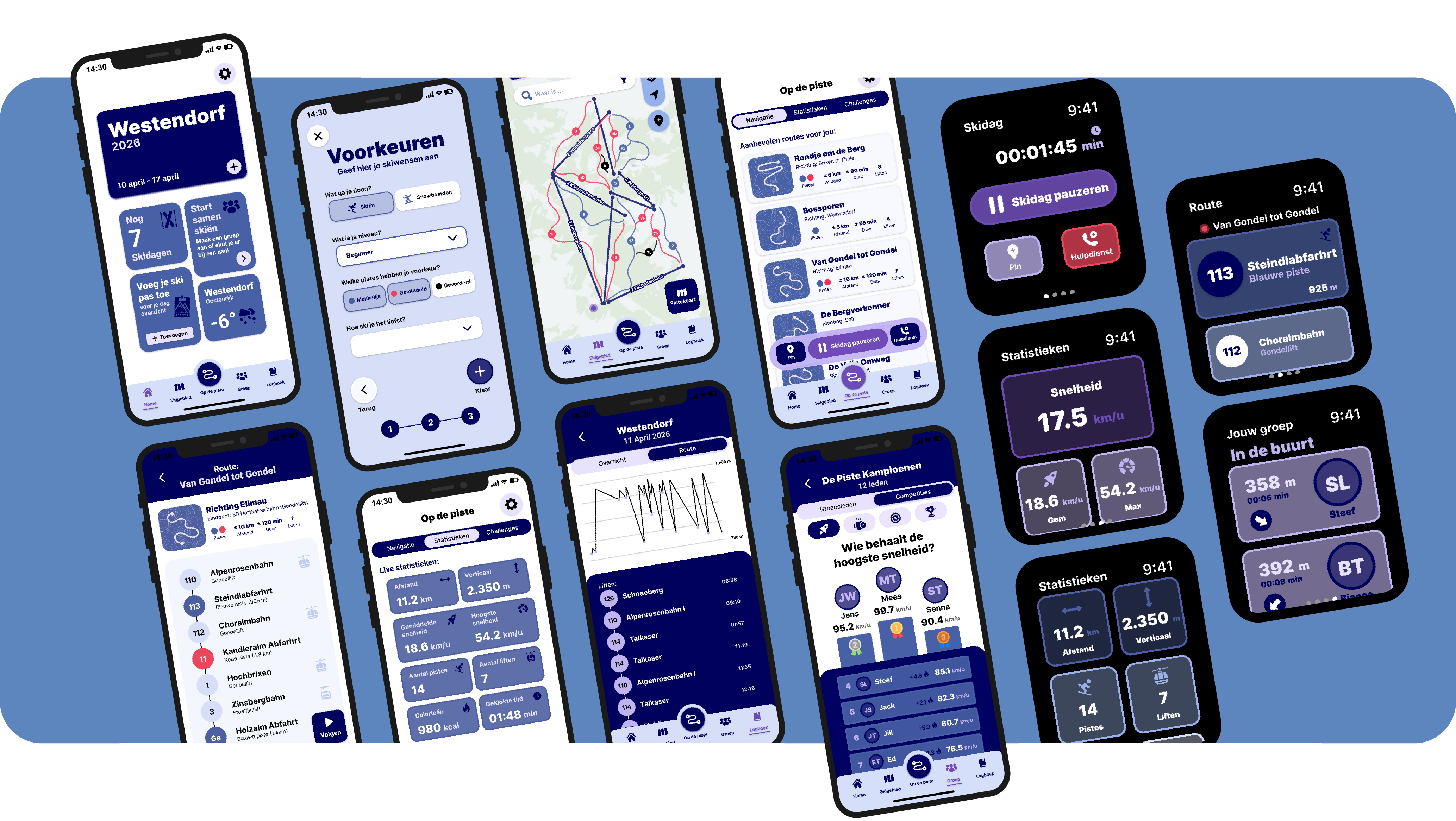 SkiBuddy is een multi-device ski-app die wintersporters helpt om zorgeloos en met plezier de skipiste op te gaan. De telefoon biedt hierbij overzicht en voorbereiding, zoals routes plannen op basis van voorkeuren en het bekijken van het skigebied. Daarnaast geeft de smartwatch tijdens het skiën snelle navigatie en live statistieken. Gebruikers kunnen zo het maximale uit hun skidag halen, blijven verbonden met vrienden en familie en kunnen achteraf hun prestaties en die van hun groep terugkijken. Zo ontstaat er een multi-device ervaring die zorgt voor overzicht, vertrouwen en gezelligheid op de piste.